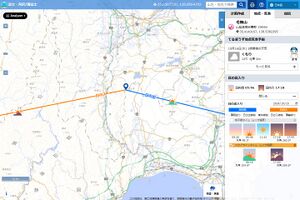 - 地点を選んでいくことで計画を作成する。システムで登録されている地点もしくはルート上以外でクリックした場合はバリエーション地点となる。直近の経由地点がバリエーション地点だった場合、および新たに指定した経由地点がバリエーション地点だった場合は、その間は直線で結ばれてバリエーションルートとなる。そうでない場合はコンパスのルートを検索する。